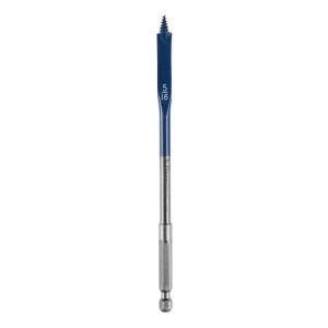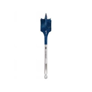 Spade Bits are used to drill larger or deeper holes fast. The finished hole is rough compared to Forstner, Auger and Brad point bits. Often used with a handheld drill for deep holes.